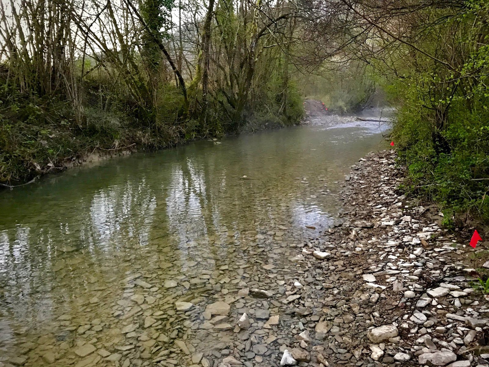 Žbevnico osvojim v popolni temi. O sončnem vzhodu še ni duha ne sluha. Zdaj pa samo še dol, dol, dol in dol, do Buzeta. Zora me ujame na balkončku, kjer se odpre prekrasen pogled na dolino Mirne. Ugasnem lučko in trenutek postojim. Vse je tako mirno in tiho. Nad reko se vijejo meglice, tu zgoraj pa je vse jasno in že slutim sončen dan, ki se obeta. Zavriskam. Če mi včasih ni nič jasno in se sprašujem zakaj te norije, se v takem trenutku razkrije čista resnica. Jaz sem človek gozdov. Tu sem doma. Ko postavljam noge drugo pred drugo v smelem koraku, ko pljuča dihajo svež zrak, ko je telo potno, ko oči vsrkavajo vso to lepoto, srce igra na vso moč in polni dušo z nečim zelo intimnim. In že sem med prvimi hišami v Buzetu (89km). Noge se po dolgih urah dotaknejo asfalta, podam se proti prebujajočemu mestu. V športni hali me čakata moja suporterja. Premagala sem dobre pol poti. Počutim se sveža in močna. Noge sodelujejo, glava je na mestu. Tu me čaka kosilo, ki ga bom pojedla za zajtrk in sveža oblačila za čez dan.Do Huma me čaka najbolj zabaven del poti. Sedemkrat bo namreč treba prečkati reko Mirno. S prvim prečkanjem hočem opraviti s skoki po skalcah. A mi že na prvi spodrsne in v vodo padem na rit. Tako zdaj nimam mokrih samo superg, ampak tudi hlače. Dober začetek, ni kaj! Naslednjega se lotim tako, da sezujem superge in nogavice. Kako prijetno je vroče noge ohladiti v mrzli vodi. Zlezem na skalco na drugem bregu in nataknem nogavico, ko dvignem nogo, da bi nataknila še supergo, me zanese in z nogo obuto v nogavico stopim v vodo. »Šit na kubik!« S temi rekami v Istri sem kot kaže skregana. Ko pritečem do naslednjega prečenja, sem že tako ihtava, da na polno zabredem čez vodo kar v supergah. Dva Hrvata, ki sta pritekla za mano, reko prečkata malo višje, kjer je čisto plitka in s suhimi nogami prideta čez. Tudi prav. Moči za pizdakanje po 100 km nimam več. Če bom kdaj nastopala v cirkusu, vrvohodka očitno ne bom, lahko pa grem za klovna. Mokre noge so tudi garancija za žulje, ki se mi seveda izdatno naredijo. Klovnovsko hojo bom torej lahko vadila do cilja.