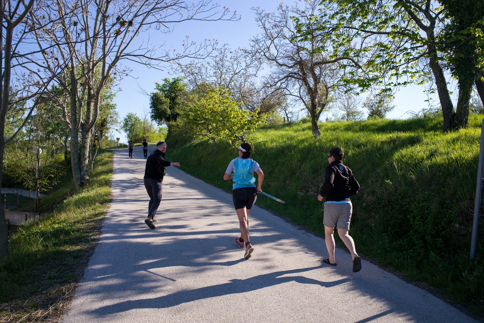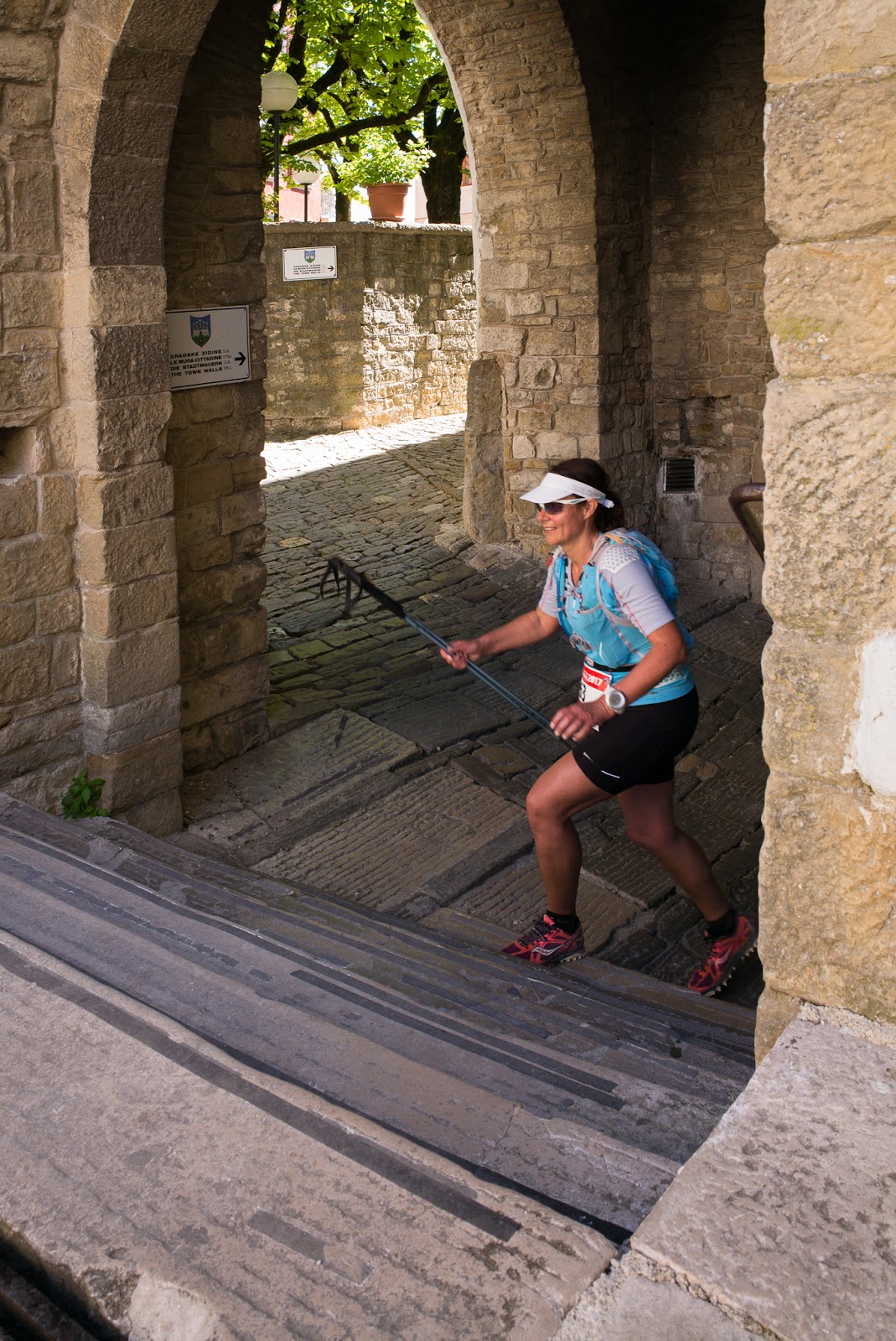 Po kratkem servisu se podam na odsek, ki mi je leta 2015, ko sem tu tekla na 100km progi, pobral toliko energije, da sem skoraj odstopila. Pot do Završja se je takrat v dežju in burji vlekla kot jara kača. Vso pregreto me danes skoraj hladi ob spominih na to, kako me je takrat zeblo. Ob obujanju spominov pa pot tokrat mineva prijetno hitro. Prav važna sem, ko v klanec suvereno prehitim še nekaj fantov. Na ravnini proti Grožnjanu stečem in prehitevam novo skupinico, ki jo pred mano reže v pohodnem koraku. Prav čutim, kakšno psihično muko jim povzročim, ko pritečem mimo. A za hrbtom slišim, kako se tudi njihovi podplati mukoma odlepijo od tal in se prestavijo v tek. Zdaj ko so pognali, so mi gotovo hvaležni za spodbudo.